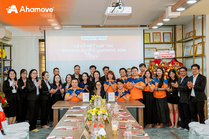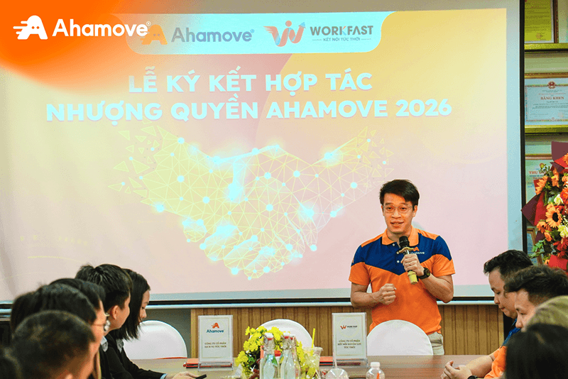 Sáng ngày 09/01/2026, Ahamove chính thức ký kết Hợp tác Nhượng quyền 2026 với đối tác WorkFast tại Bình Dương. Sự kiện đánh dấu một cột mốc quan trọng trong chiến lược mở rộng mạng lưới nhượng quyền của Ahamove, đồng thời khẳng định định hướng phát triển logistics ứng dụng công nghệ và trí tuệ nhân tạo (AI-driven) tại các thị trường trọng điểm.