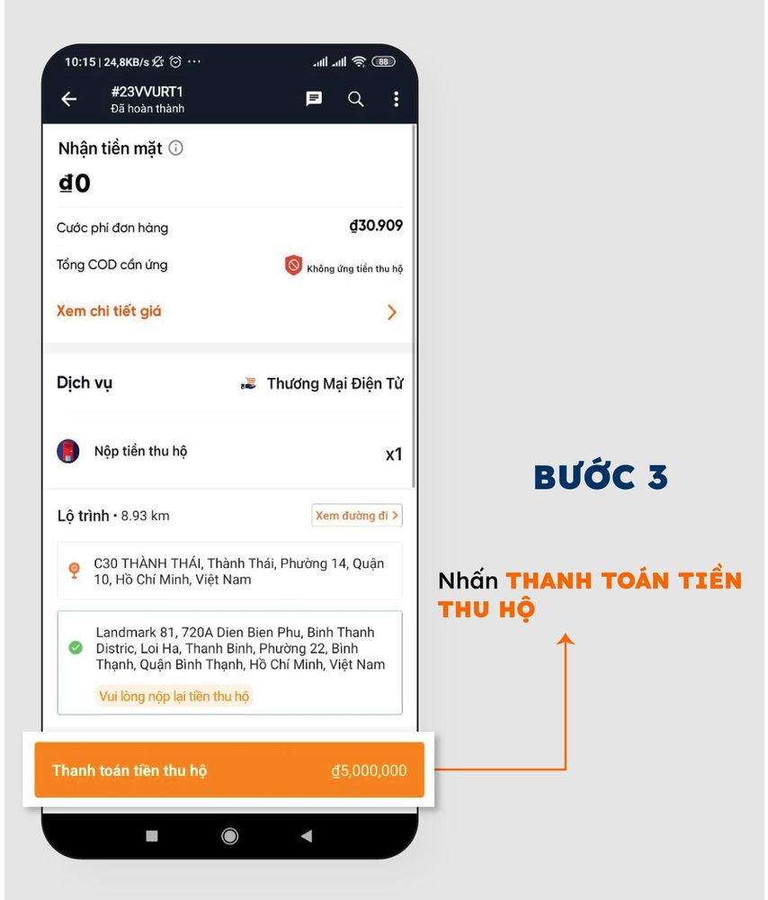 ⇢ Đối với những đơn hàng có dịch vụ kèm theo “Nộp tiền thu hộ”,