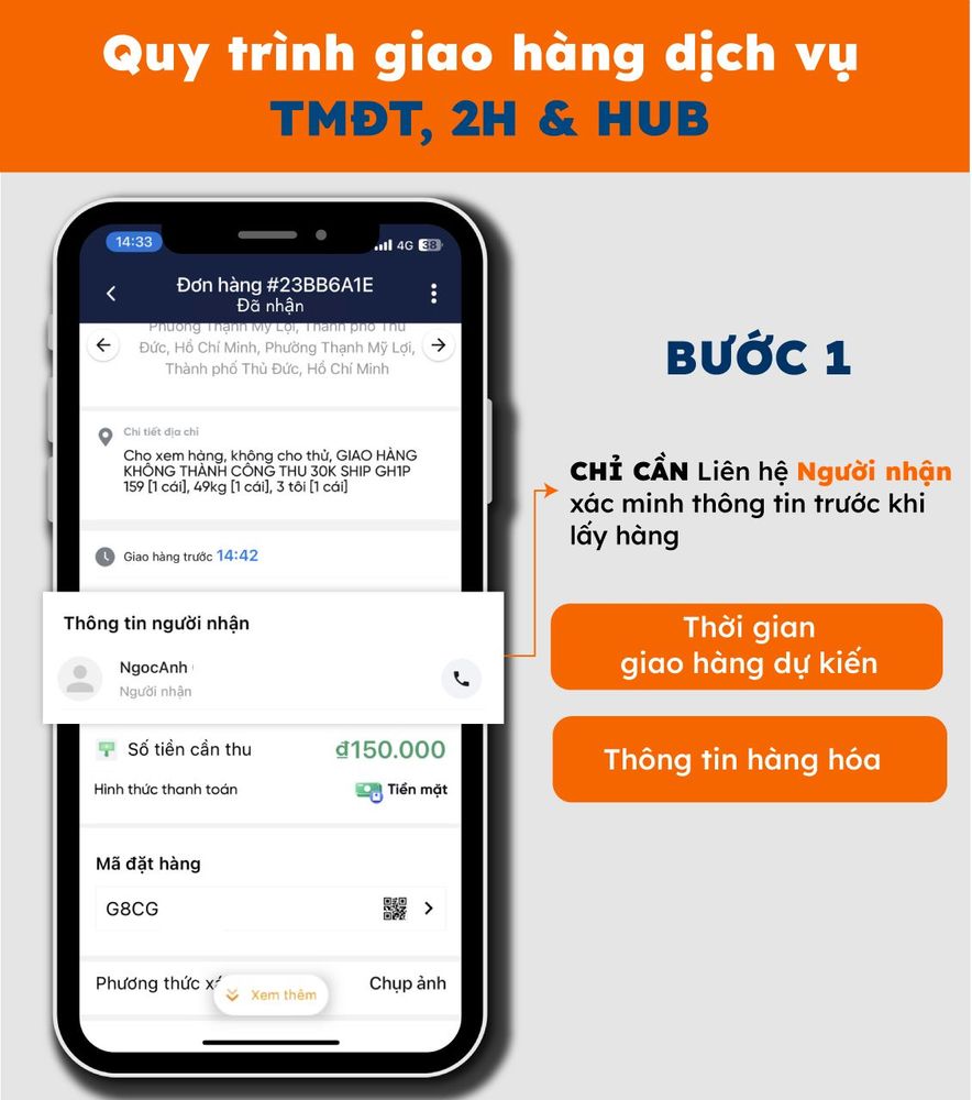 Bước 1: Nhận đơn >> LIÊN HỆ NGƯỜI NHẬN để xác nhận thông tin trước khi lấy hàng