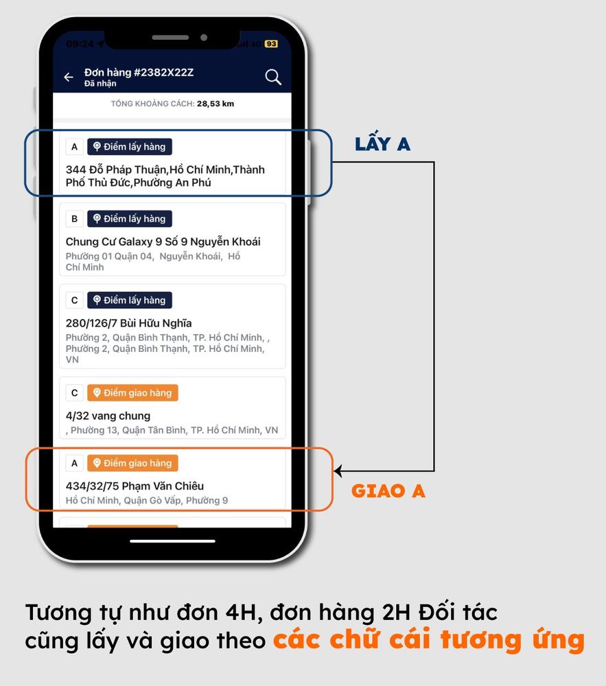 - Cần kiểm tra MÃ VẬN ĐƠN trên gói hàng trùng với MÃ VẬN ĐƠN của đơn hàng trên ứng dụng, tránh trường hợp Người gửi/Kho đưa nhầm hàng hoá.