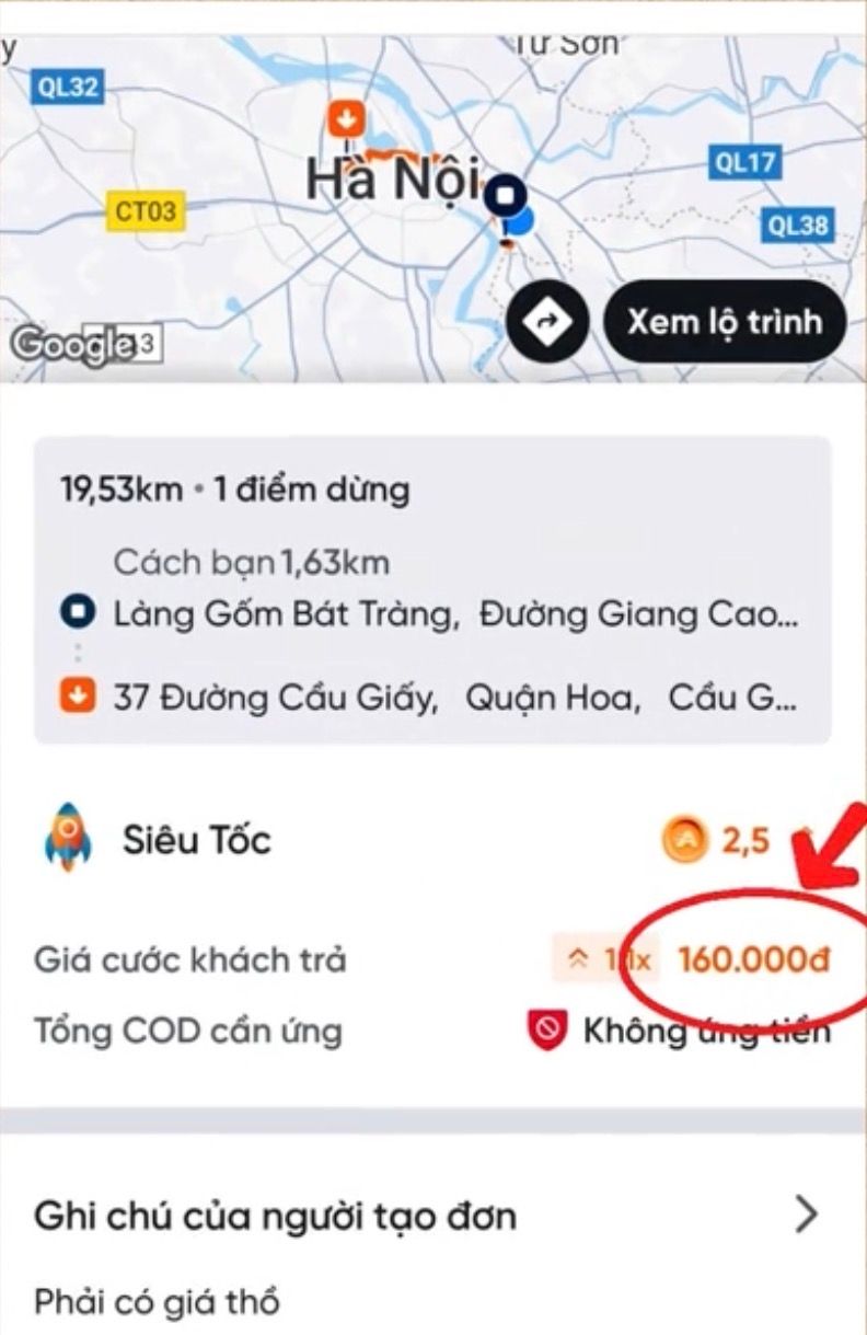 Đối tác A đã thực hiện 1 đơn hàng có hiển thị “Giá cước khách trả” là 160.000đ (đã bao gồm VAT) (ảnh minh họa phía dưới)