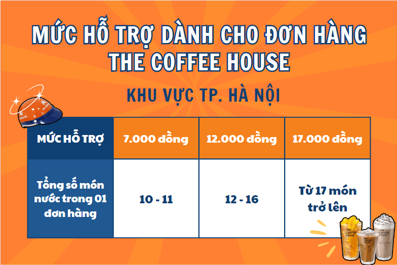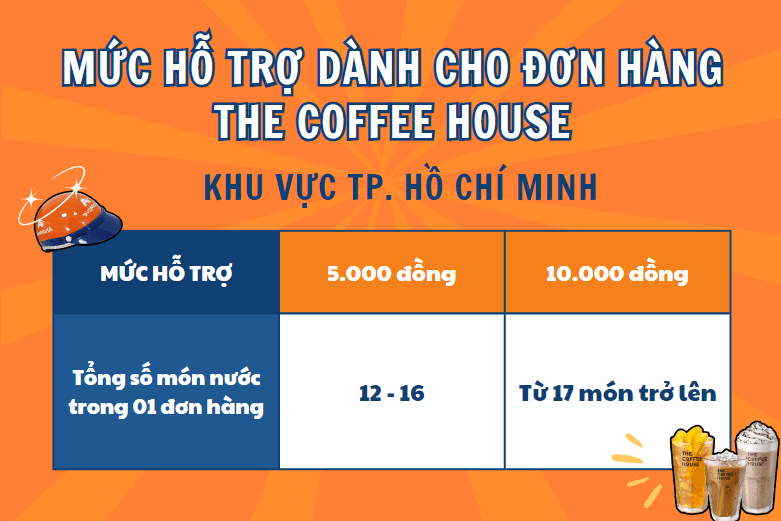 Với nhu cầu tiêu thụ tăng cao trong thời gian gần đây, hàng ngàn đơn hàng The Coffee House đã nhanh chóng “bùng nổ”. Với mong muốn khích lệ Đối tác nhận đơn, Ahamove đã triển khai Chính sách hỗ trợ dành riêng cho các đơn hàng thuộc thương hiệu này, cụ thể như sau: