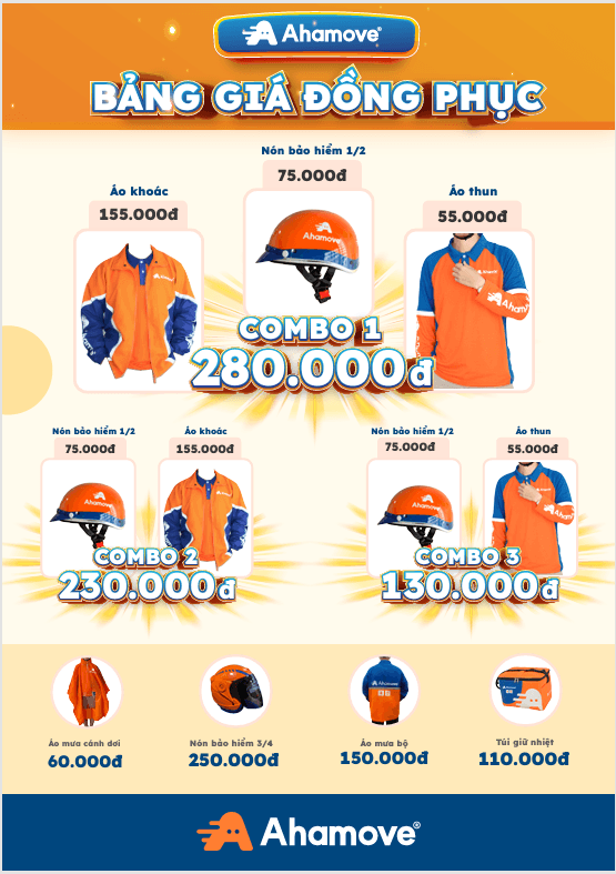 [ĐỒNG PHỤC AHAMOVE] DIỆN MẠO MỚI – CHẤT LƯỢNG SIÊU HỜI – COMBO GIÁ KHÔNG ĐỔI