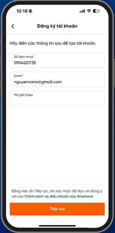 Đối tác mới sau khi tải ứng dụng Tài xế Aha Đối tác mới vui lòng chọn mục "Đăng ký" để đăng ký tài khoản. Tại đây, Đối tác mới vui lòng điền đầy đủ thông tin và nhập mã giới thiệu của người giới thiệu.