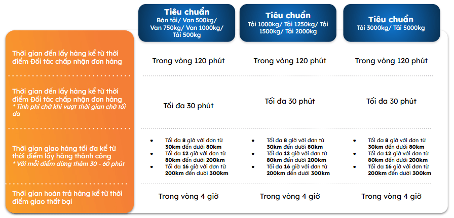 Áp dụng cho các loại tải tương tự (750kg – 1250kg – 3000kg – 5000kg) với mức giá tiết kiệm hơn, phù hợp khách hàng không cần giao nhanh.