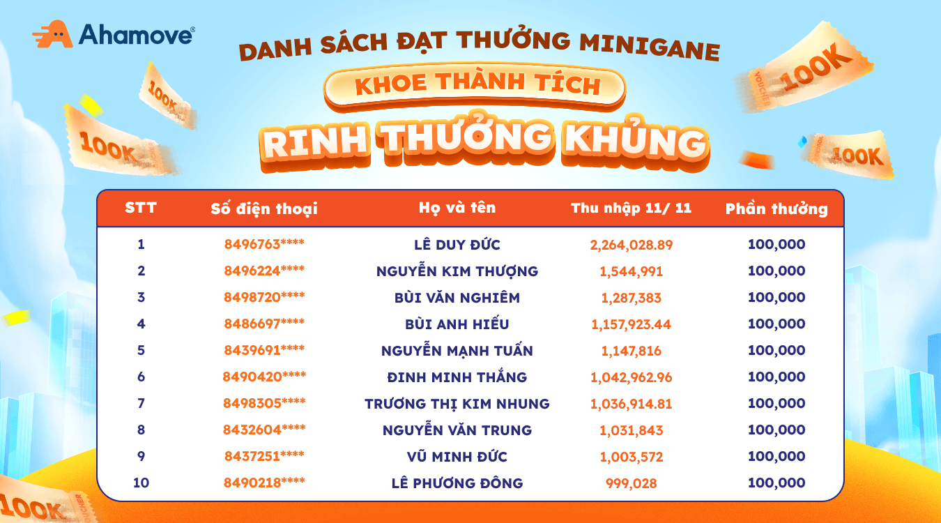 Ahamove chúc mừng Đối tác đã xuất sắc ghi tên mình trong top 50 chương trình “Khoe thành tích- Rinh thưởng khủng”