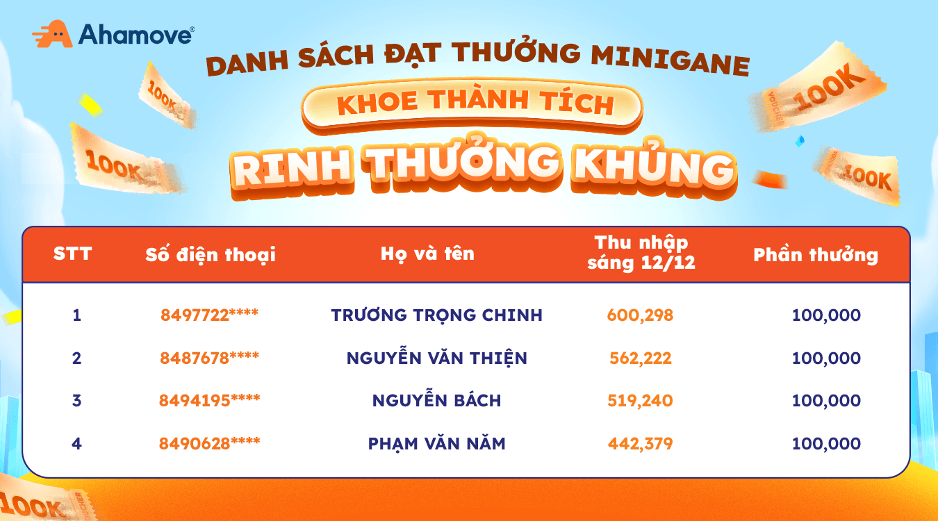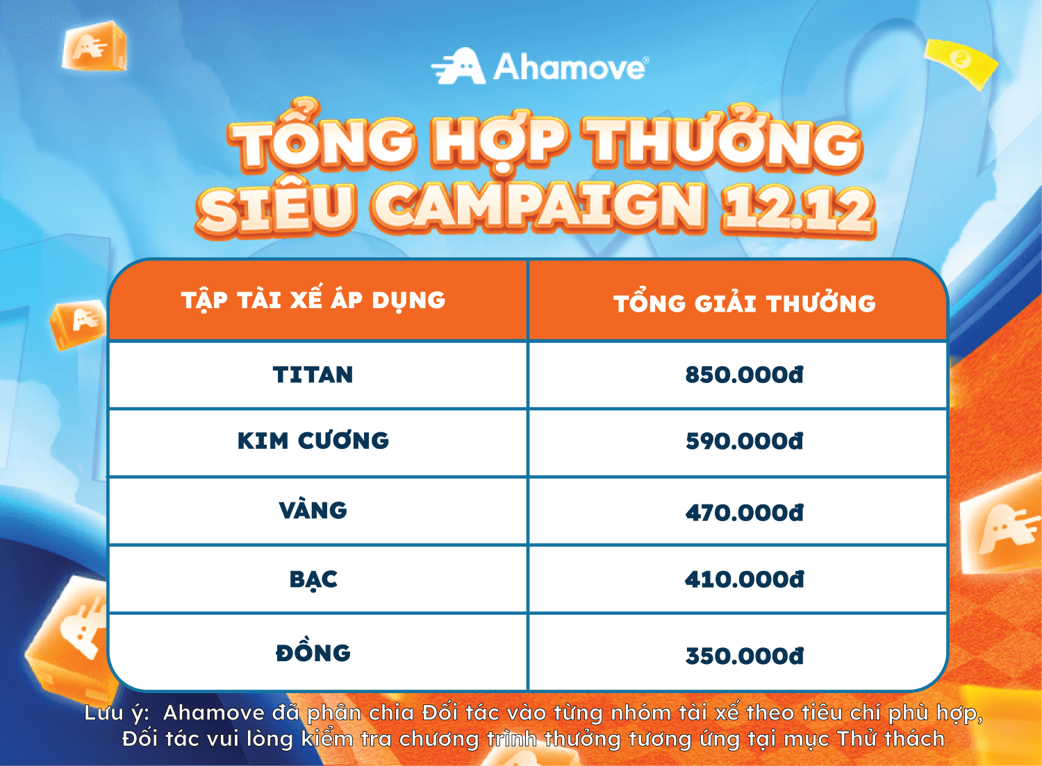 🎯Đồng hành cùng bác tài trong dịp campaign lớn nhất năm 12/12, Ahamove ra mắt bộ chương trình thưởng dành cho từng bác tài, với tiêu chí: