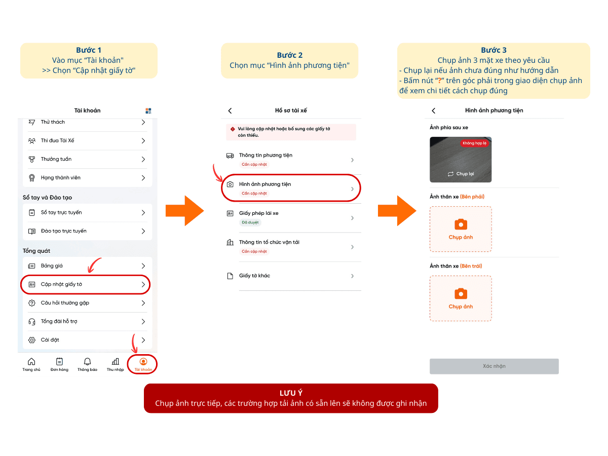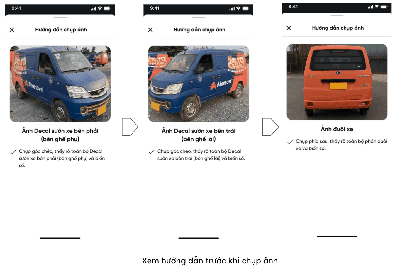 3. Chụp ảnh 3 mặt xe như yêu cầu