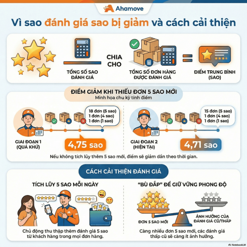 1. Tôi không chạy đơn nhưng đánh giá sao bị giảm?