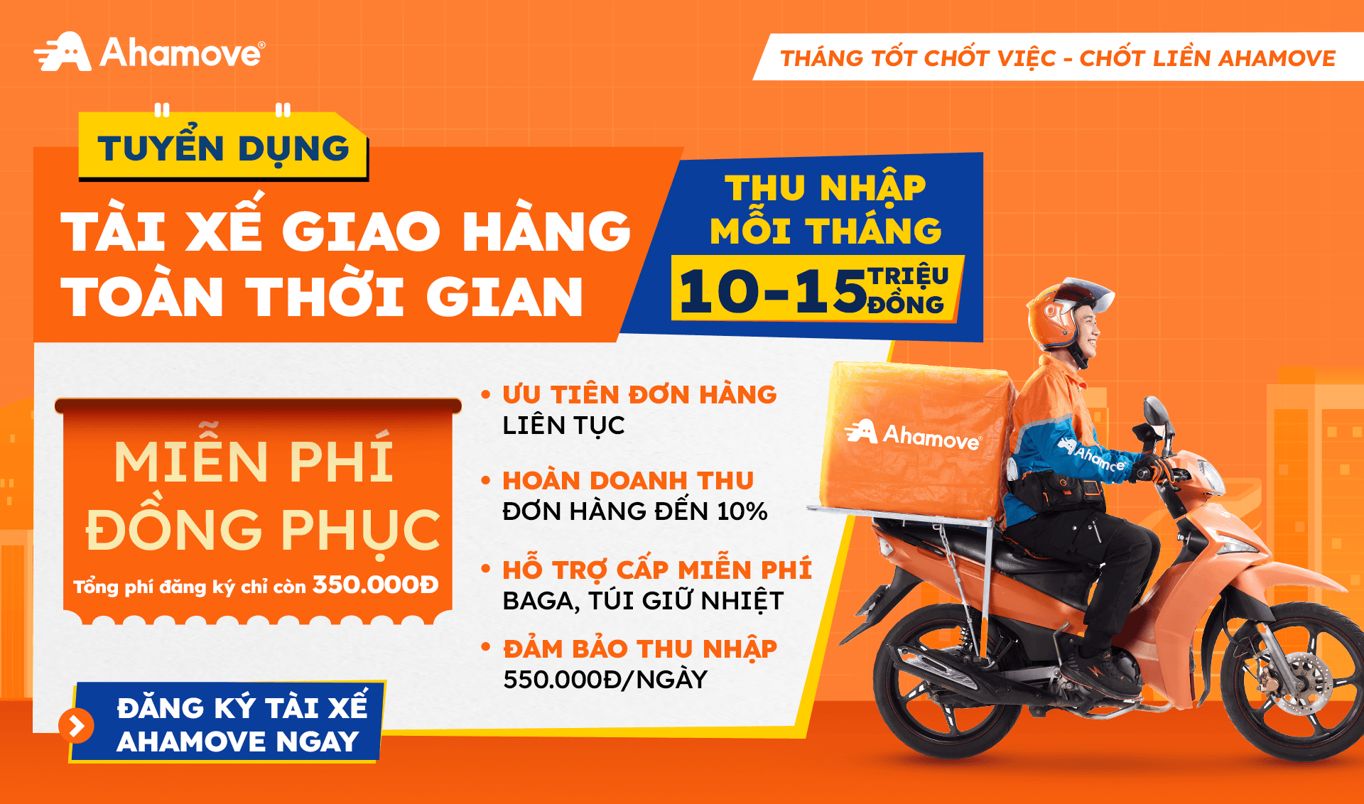 THÁNG 4 NÀY, Ahamove chính thức mở tuyển dụng thêm đội ngũ TÀI XẾ GIAO HÀNG TOÀN THỜI GIAN với các quyền lợi và ưu đãi cực hấp dẫn, chi tiết như sau: