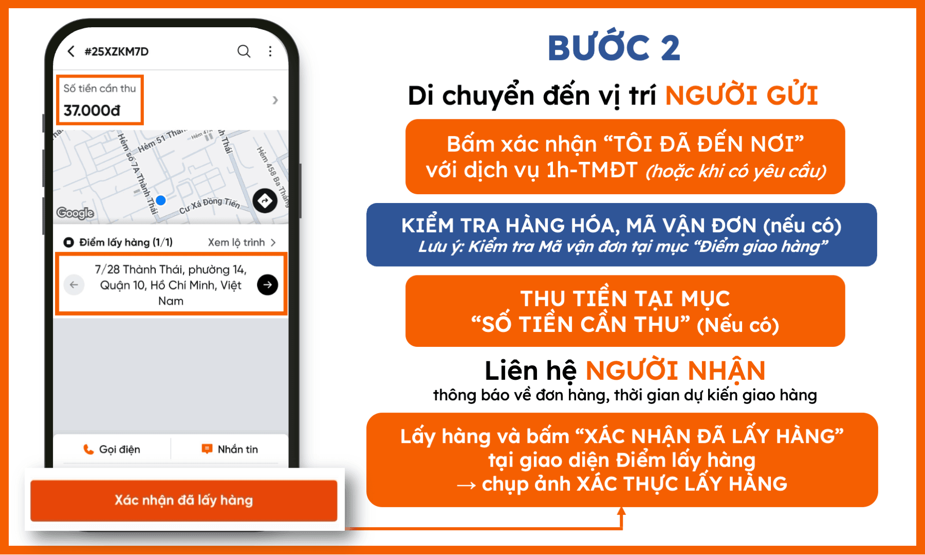 Đối tác không cần gọi cho người gửi, nhưng BẮT BUỘC gọi cho NGƯỜI NHẬN trước khi tới điểm lấy hàng.