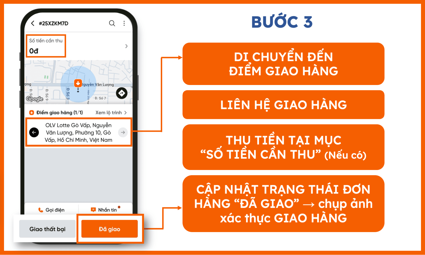 Trong trường hợp giao hàng thất bại, Đối tác cần hoàn trả hàng và chụp ảnh xác thực theo đúng quy định.