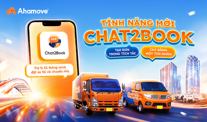 Chat2Book là cách nhanh nhất và thông minh nhất để đặt dịch vụ vận chuyển hàng cồng kềnh tại Việt Nam. Ahamove tiên phong ứng dụng AI để tự động hoá hoàn toàn quy trình đặt đơn, mang đến trải nghiệm đơn giản và tiện lợi hơn bao giờ hết.