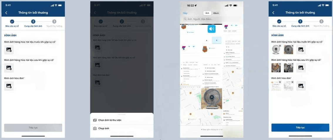 Bước 4: Cung cấp hình ảnh hóa đơn và hình ảnh của hàng hóa, tài liệu trước và sau khi gặp sự cố trong quá trình vận chuyển